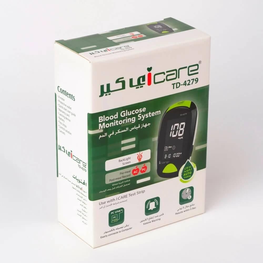 جهاز iCare GM260 يمنحك نتائج دقيقة لمستوى السكر في الدم خلال 5 ثوانٍ فقط. مزود بذاكرة تخزين حتى 1000 قراءة مع التاريخ والوقت، شاشة LCD كبيرة مضاءة للقراءة بسهولة، وإعداد تلقائي (Auto-Coding) لتجنب الأخطاء. يحتوي على خاصية التخلص التلقائي من الشريط وتنبيه عند ارتفاع مستوى الكيتون، ليمنحك متابعة دقيقة ومريحة لمستوى السكر في أي وقت.